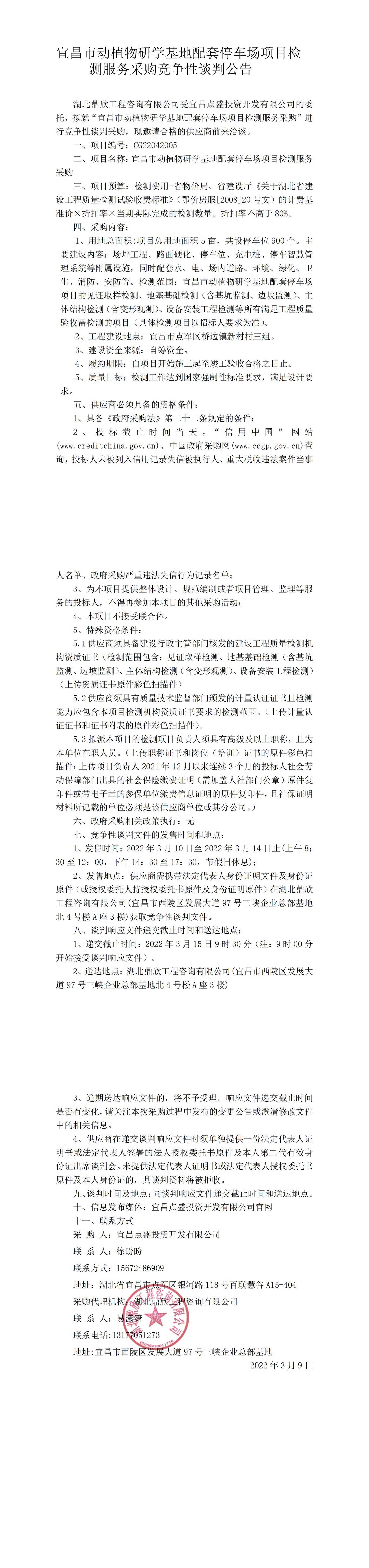 宜昌市動植物研學(xué)基地配套停車場項(xiàng)目檢測服務(wù)采購競爭性談判公告