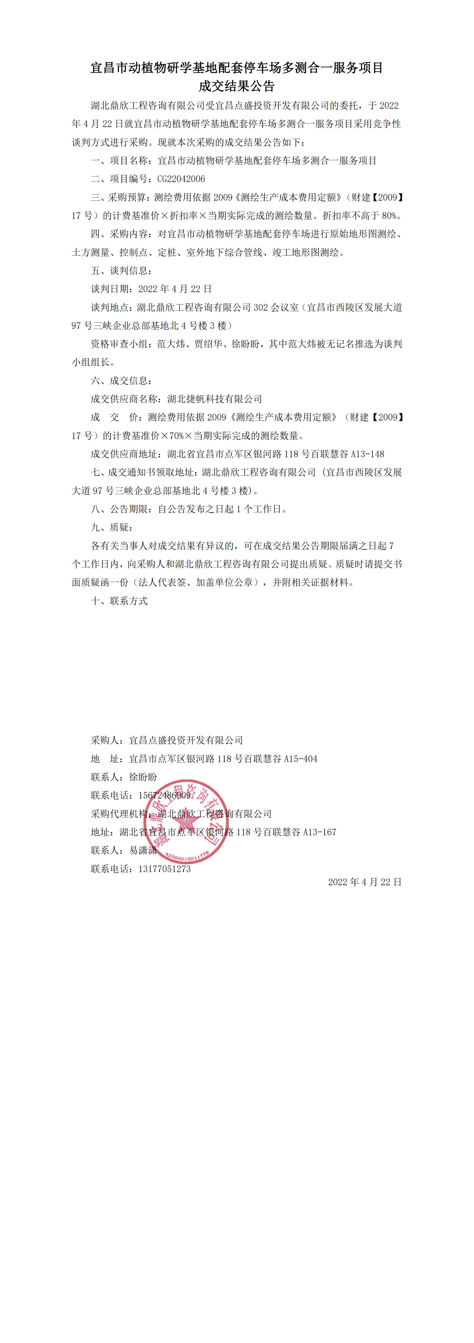 宜昌市動植物研學基地配套停車場多測合一服務項目成交結果公告